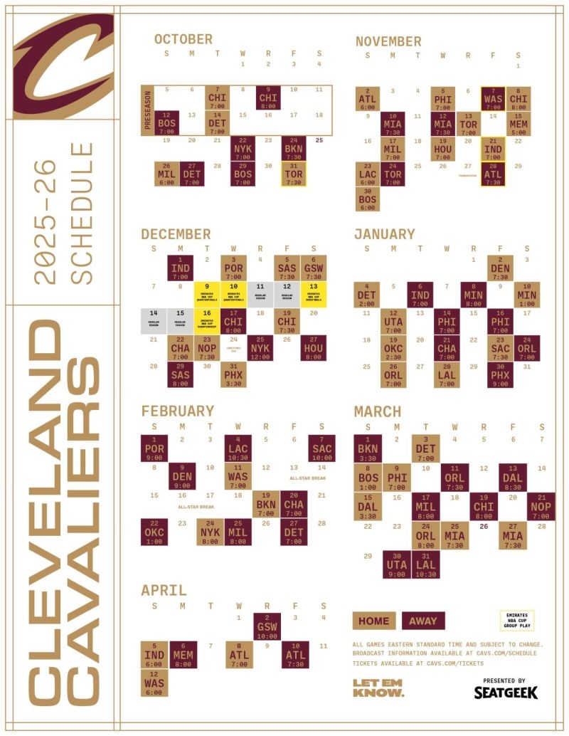With the 2026 Cavaliers printable schedule, you’ll know exactly when and where the Cavaliers are playing throughout the season. From home games at Rocket Mortgage FieldHouse to away games across the country, you’ll be in the know.