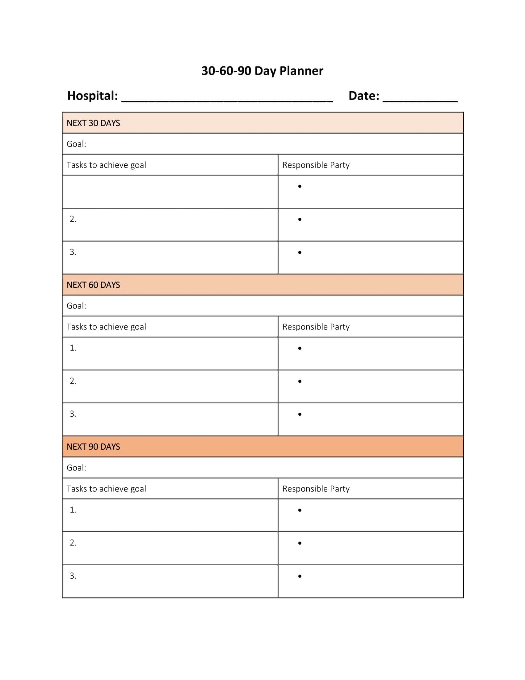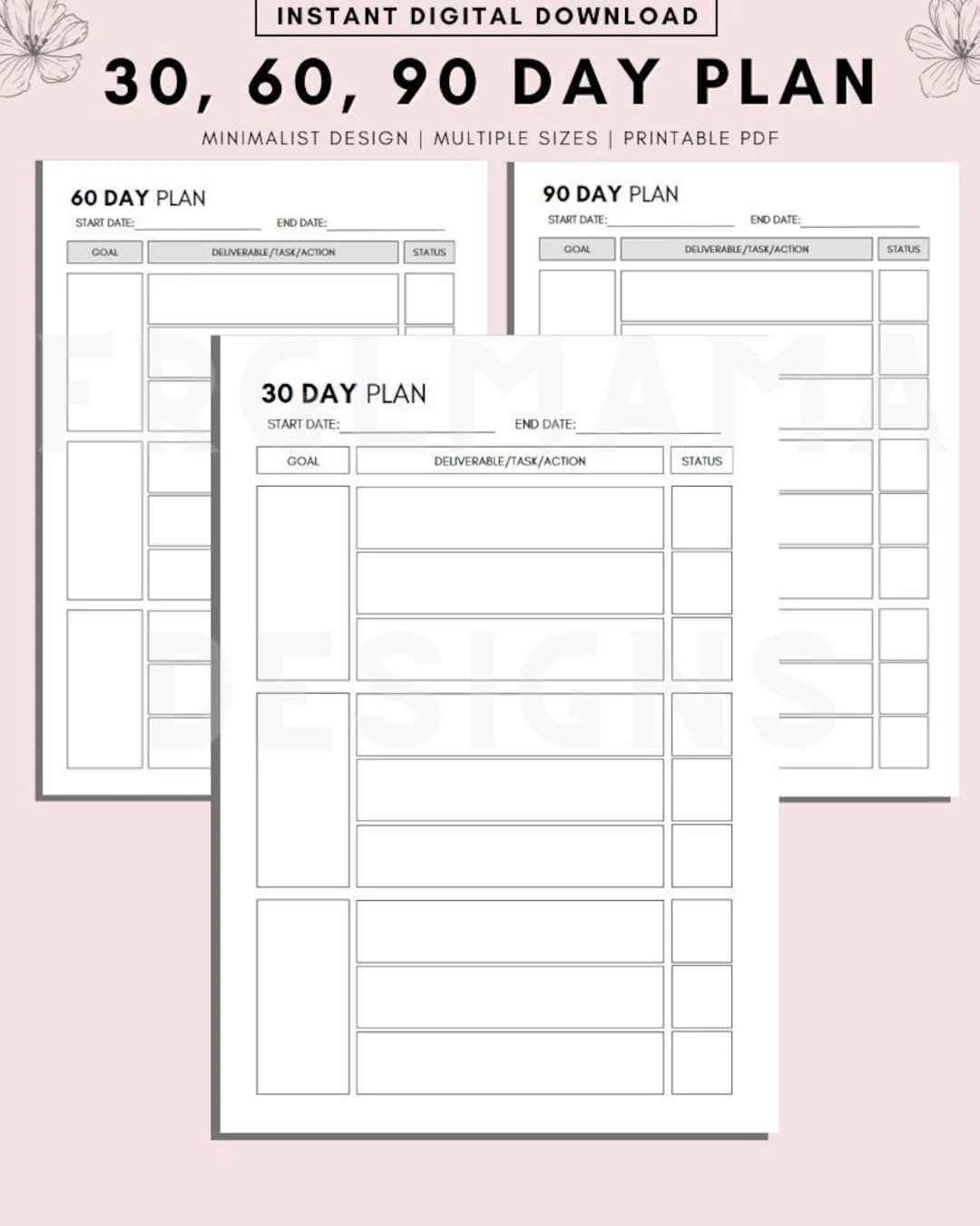 30 60 90 Day Plan Template Printable Fitness Goal Planner digital Download Etsy