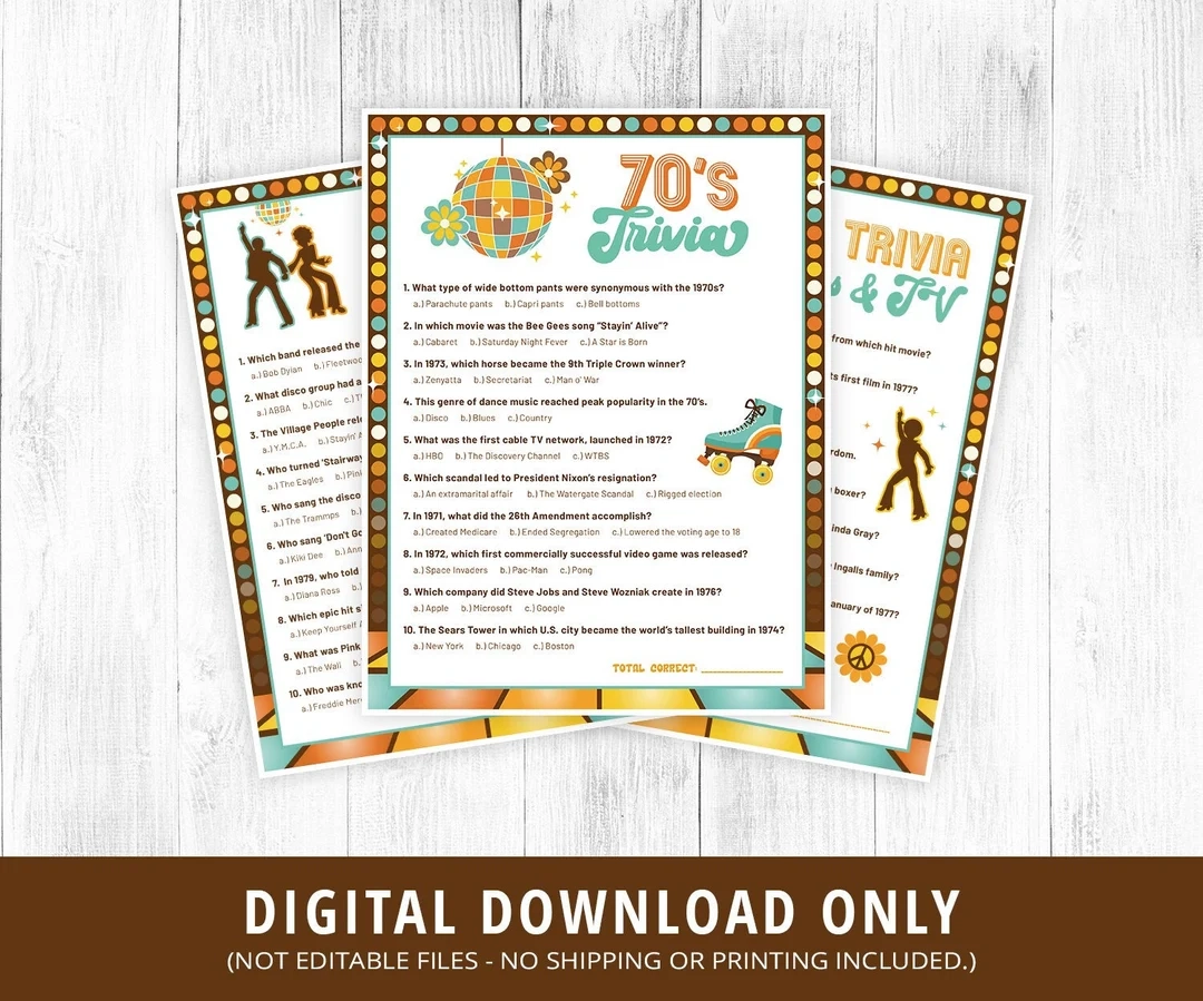 Don’t miss out on the fun – download our 60s and 70s trivia printables now and get ready for a blast from the past. Whether you’re hosting a party, looking for a fun family activity, or just want to challenge yourself, our printable trivia games are the perfect way to test your knowledge of the swinging 60s and groovy 70s. Let’s get quizzical!