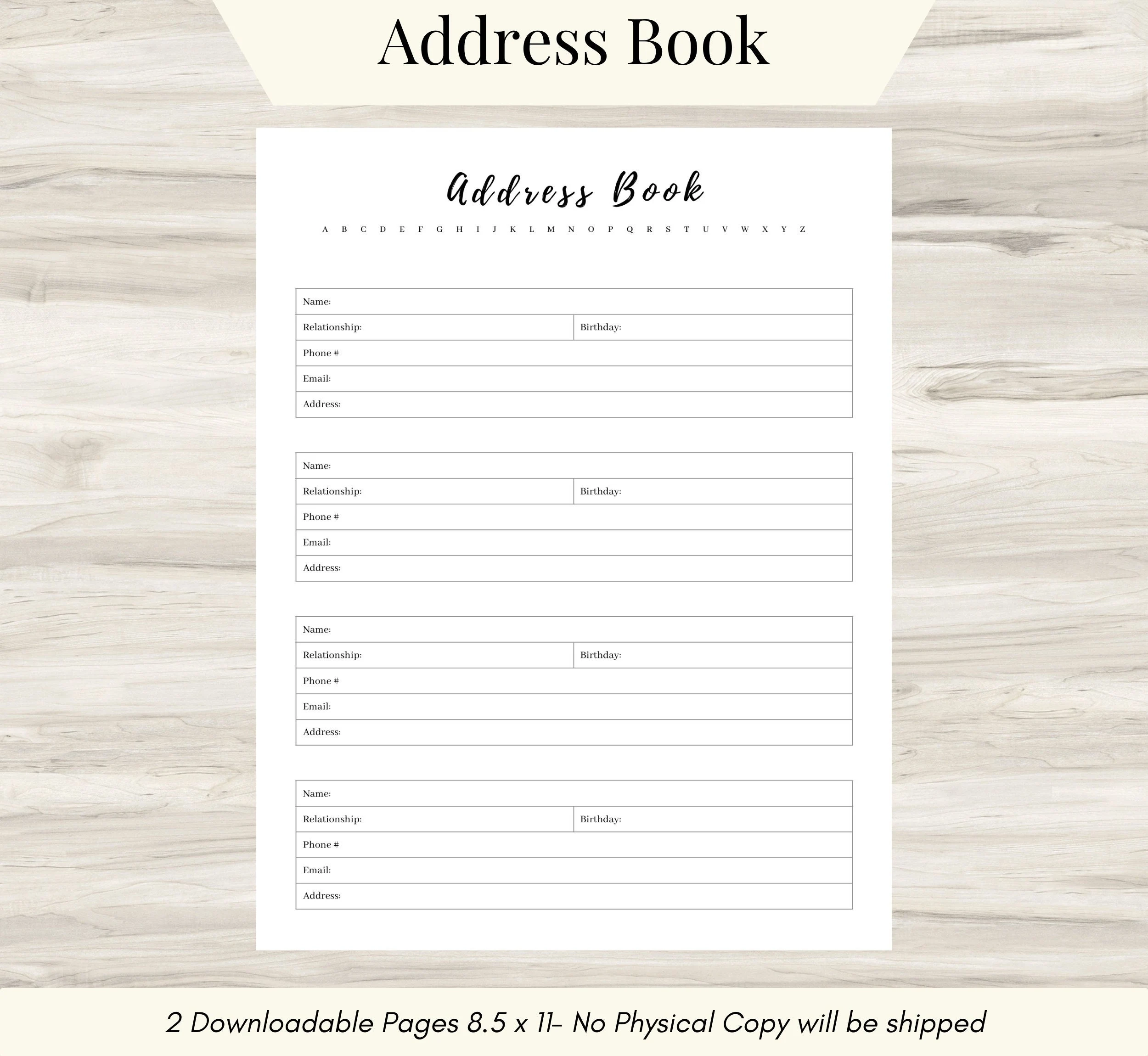 Printable Address Book US Letter And A4 Size PDF Instant Download Plan Print Land