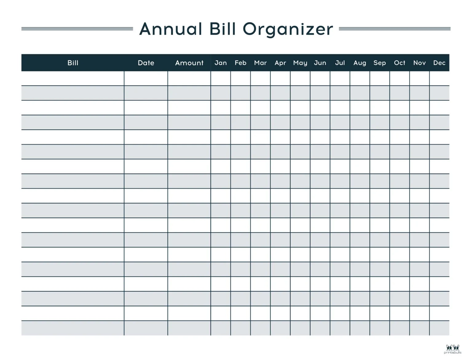 Annual Bill Schedule Free Printable