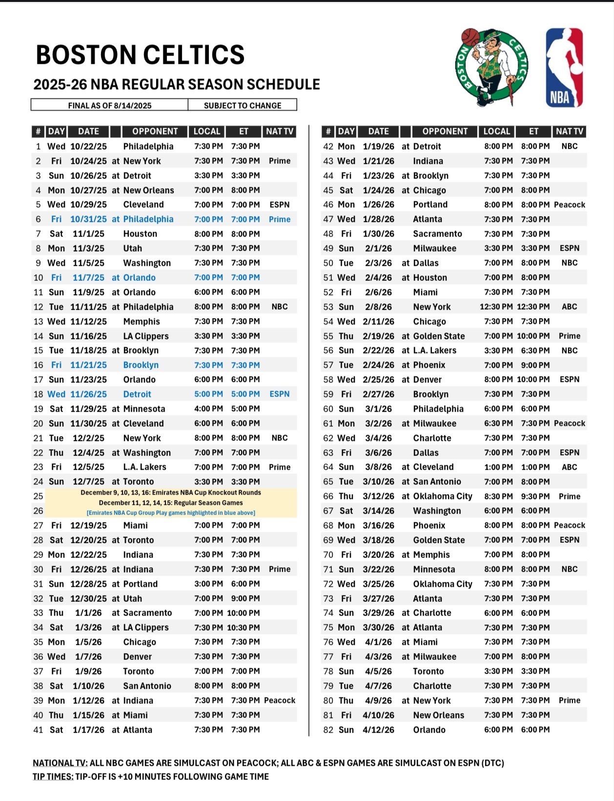 Noa Dalzell On X The Celtics 2025 2026 Schedule Is Officially Here Https t co aVJPZEVZjU X