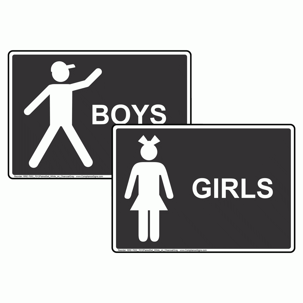 Amazon ComplianceSigns Girls Boys Restroom Sign Set Bilingual ADA Compliant Braille And Raised Letters 11×6 In Blue Acrylic Plastic For Bathrooms Industrial Scientific