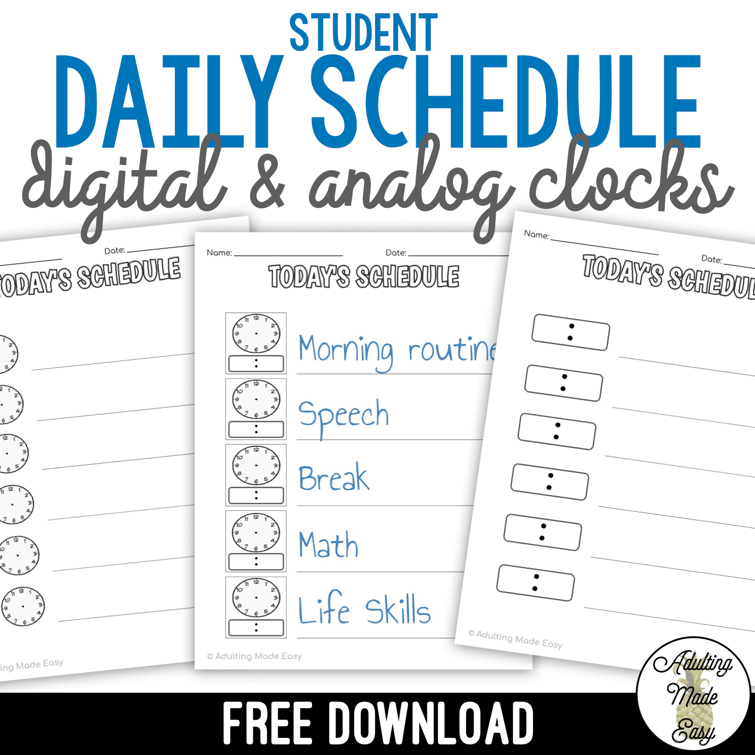 Student Daily Schedule With Digital Analog Clocks