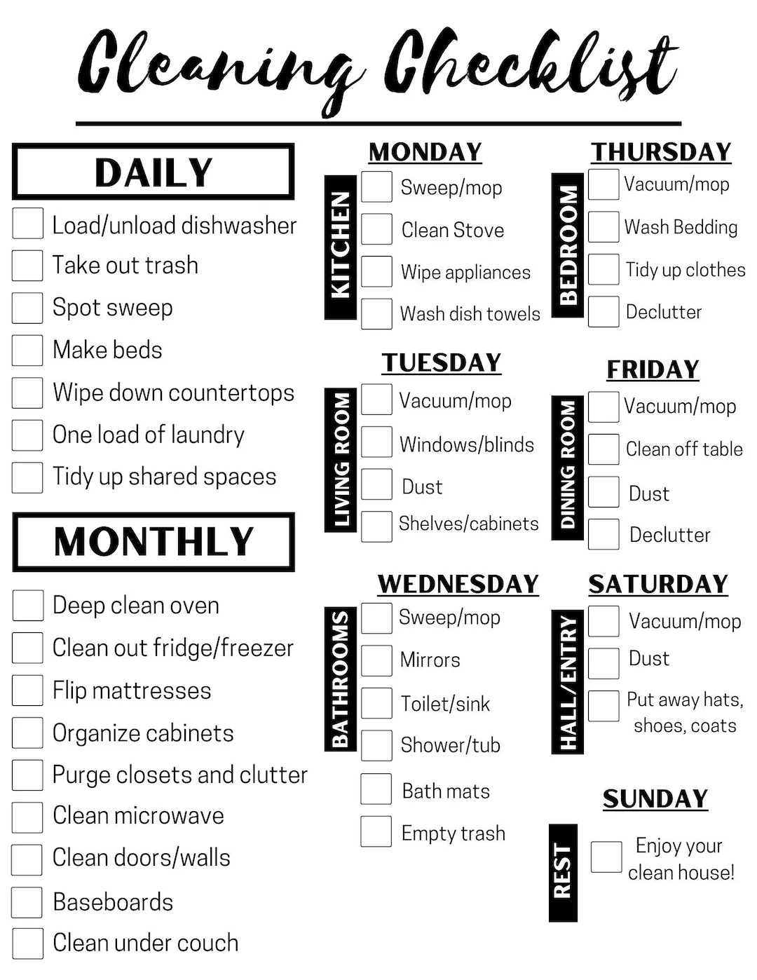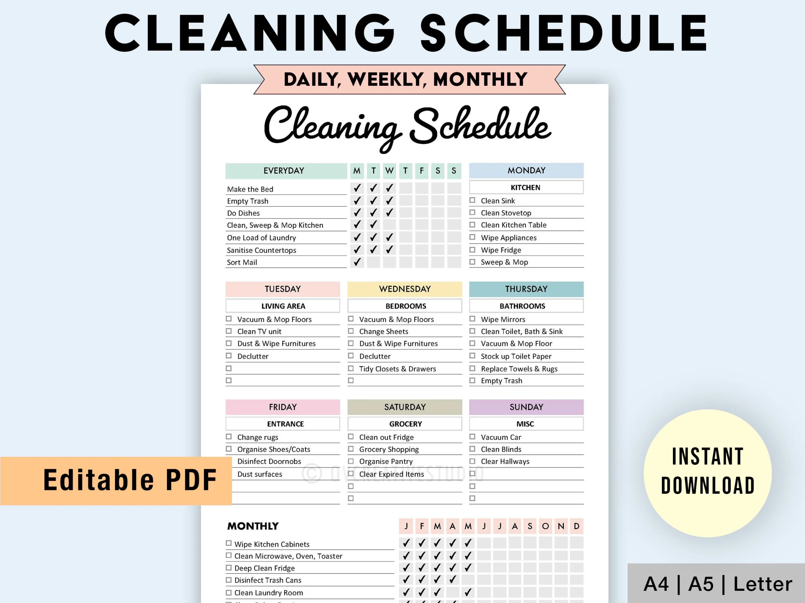Editable Cleaning Schedule Printable Cleaning Checklist Daily Weekly Monthly Cleaning Planner Chore Chart Printable Digital PDF Etsy