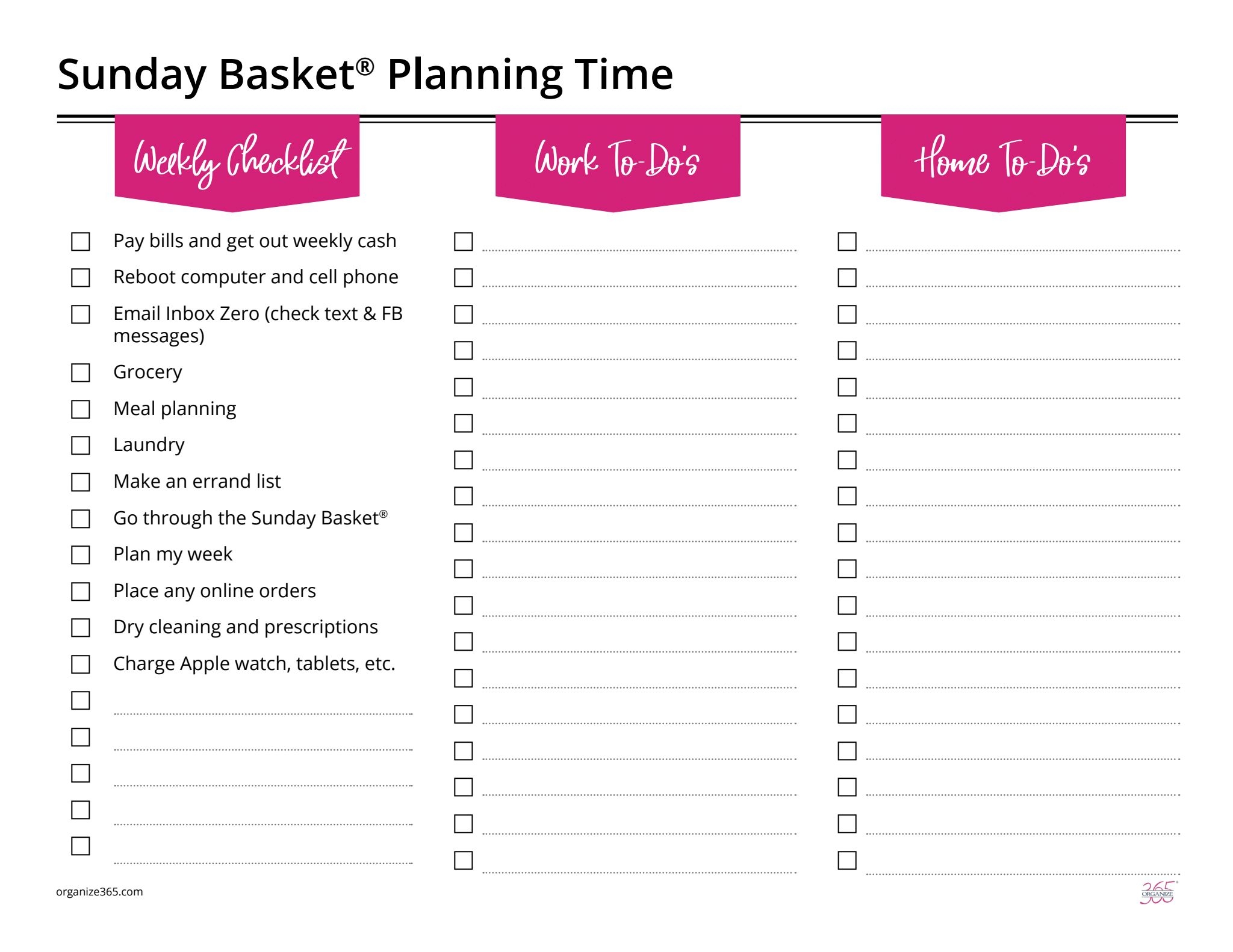 Podcast Episode 60 Sunday Basket Planning Printables Organize365