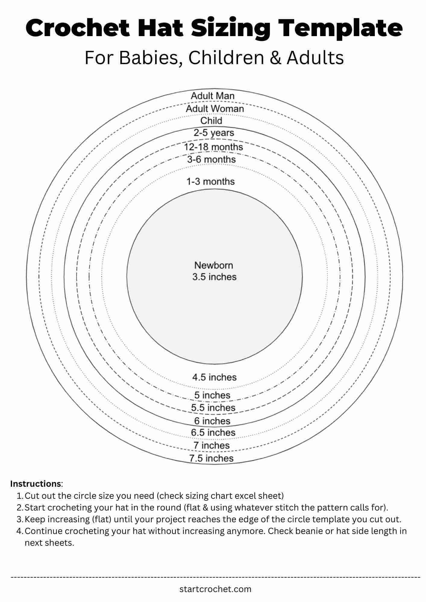 Crochet Beanie Hat Sizing Chart Template Printable PDF Start Crochet