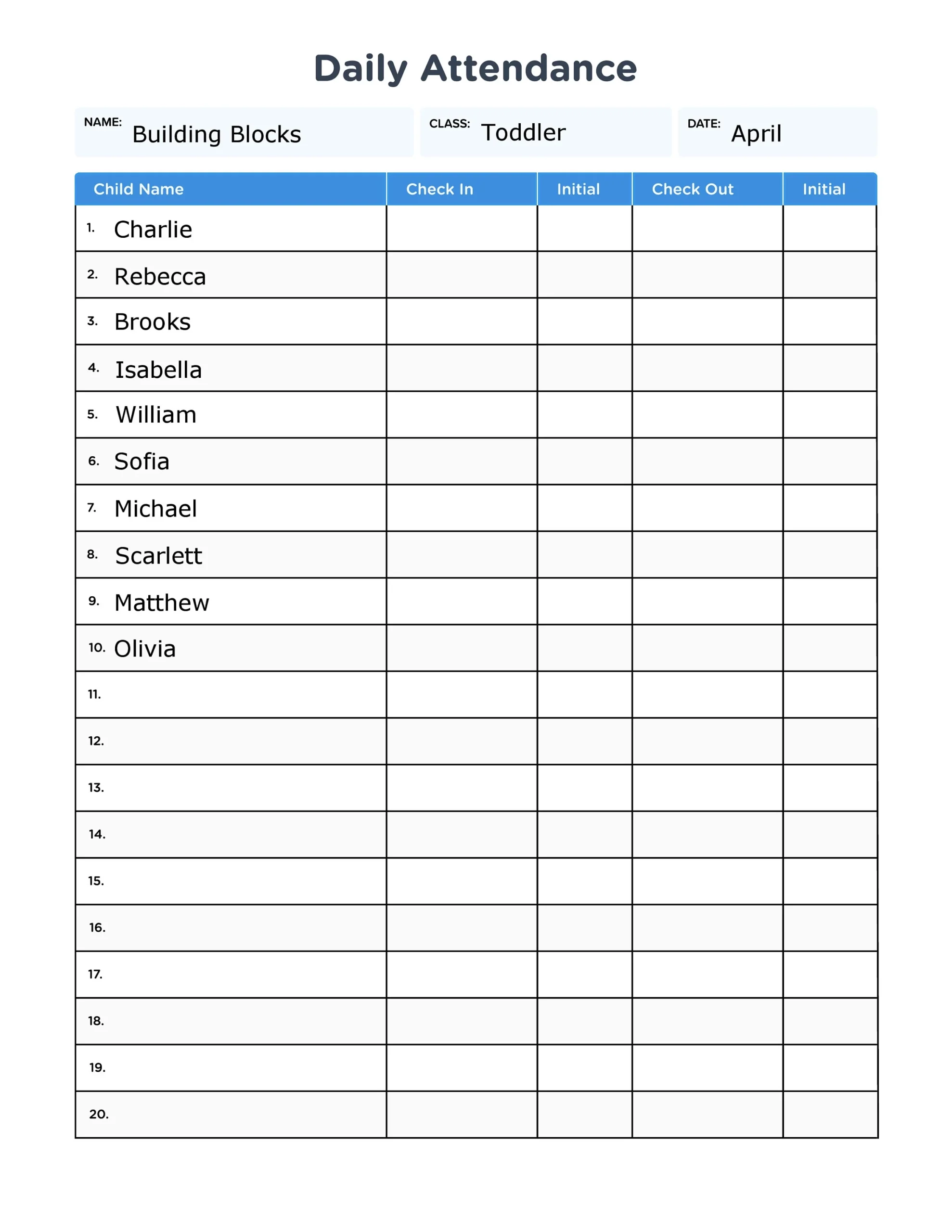 By using our printable sheet, you can quickly identify any patterns or trends in attendance. This can be helpful for planning activities, staffing, or communicating with parents about their child’s attendance.