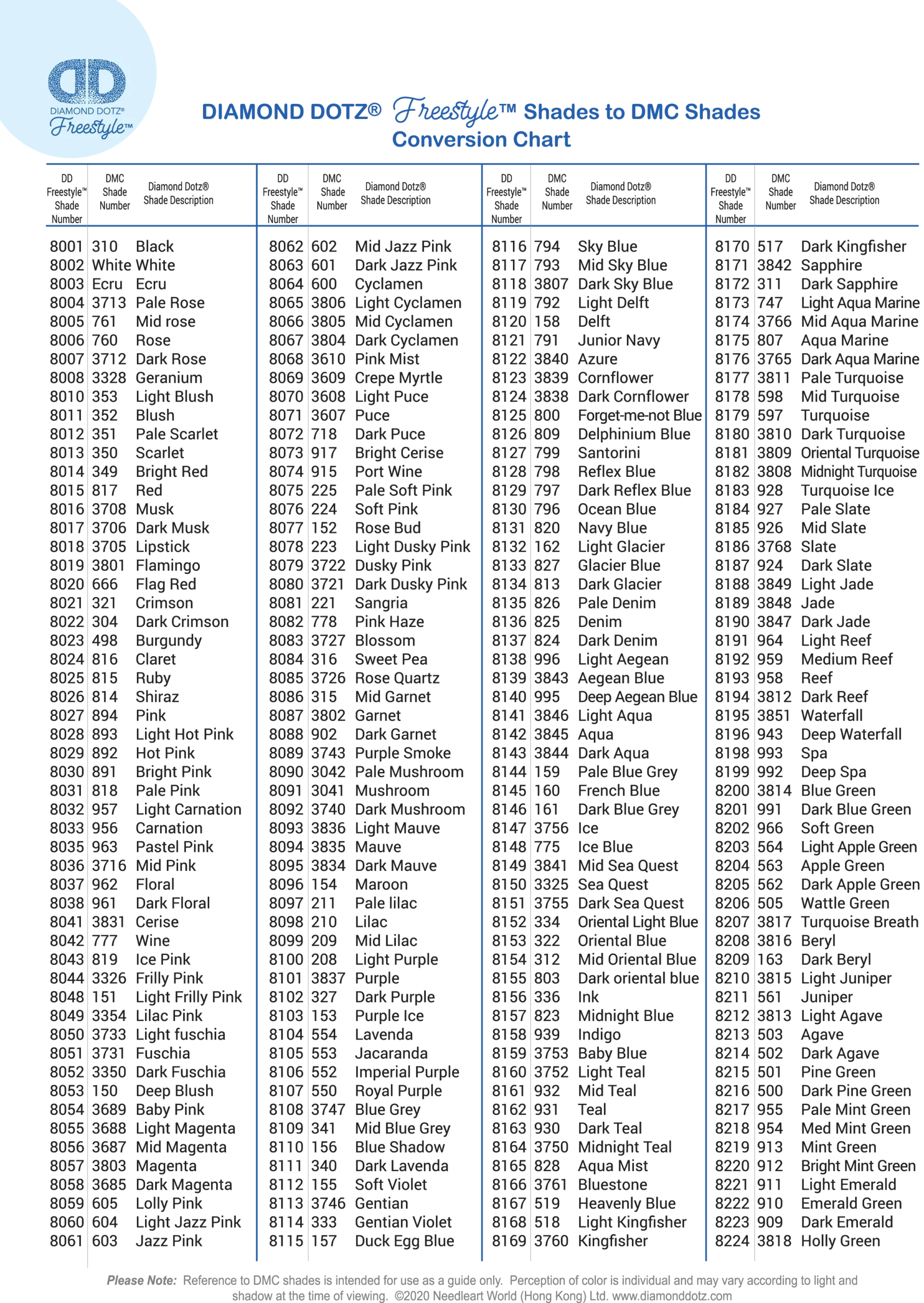 DMC Conversion Chart DIAMOND DOTZ