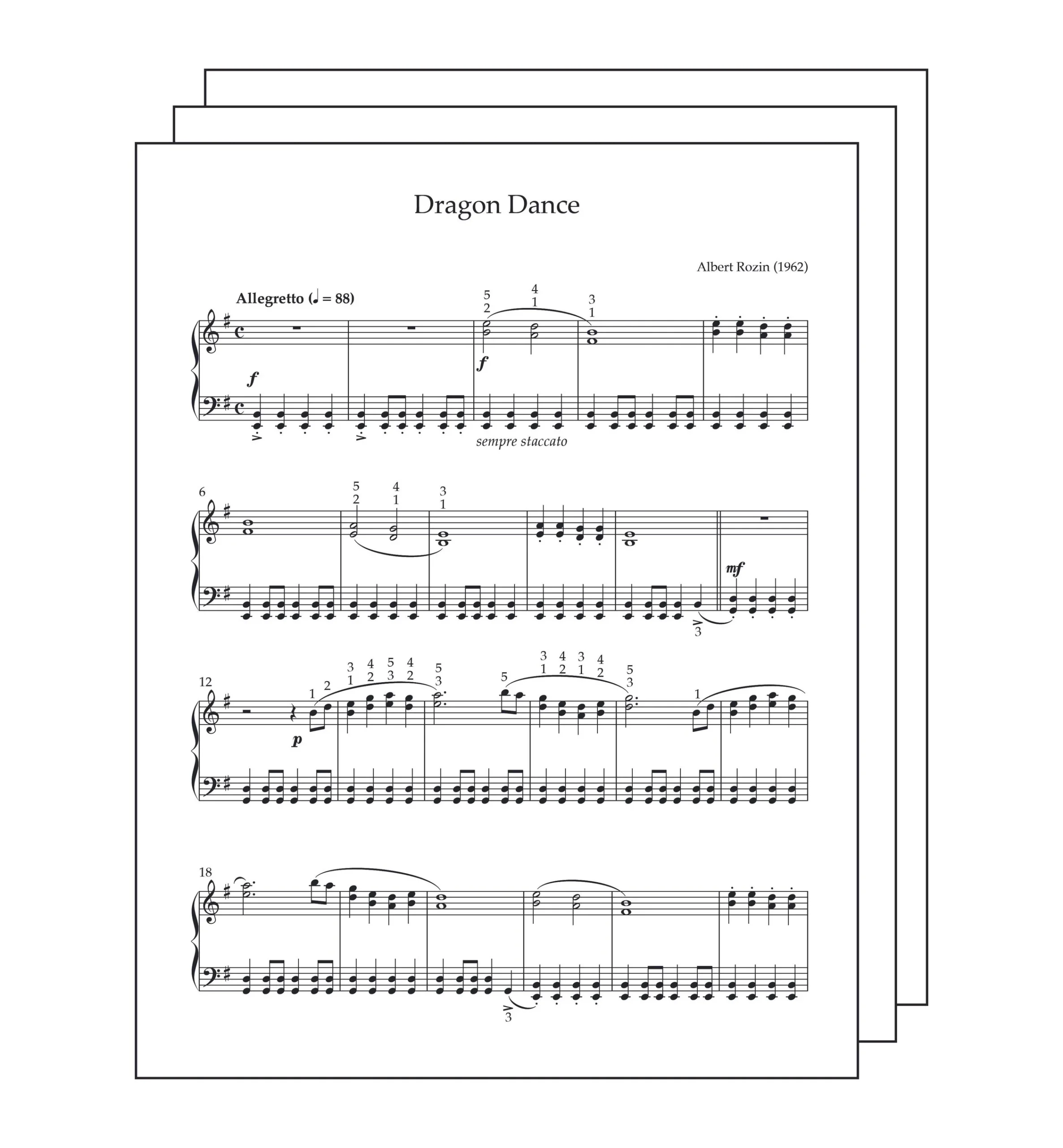 Our printable Dragon Dance sheet music is perfect for musicians of all levels, whether you’re a beginner or an experienced player. The sheet music includes both the melody and accompaniment parts, making it easy to play solo or with a group.