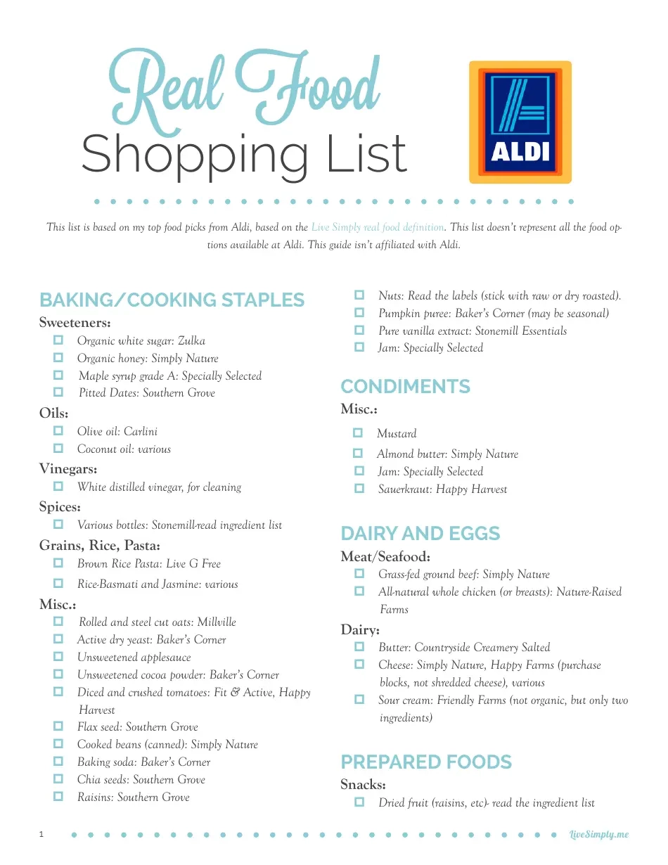 Aldi Shopping List Weekly Meal Plan Simple Purposeful Living