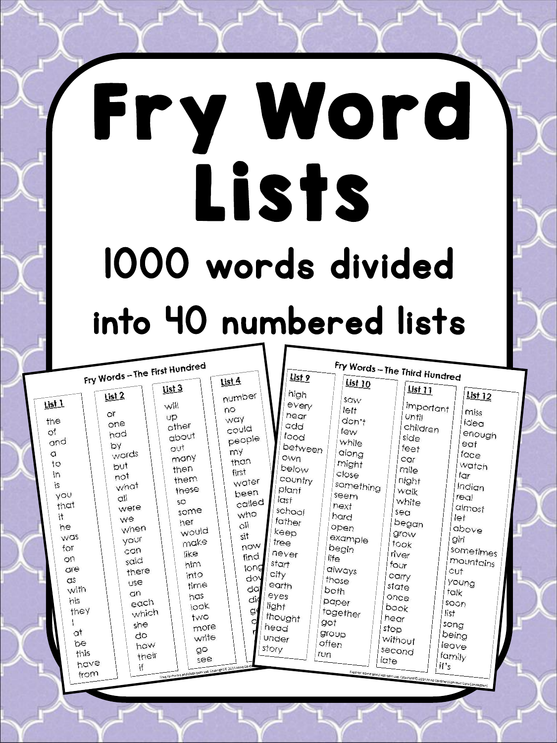 Fry Word Lists 1000 Common Words For Reading