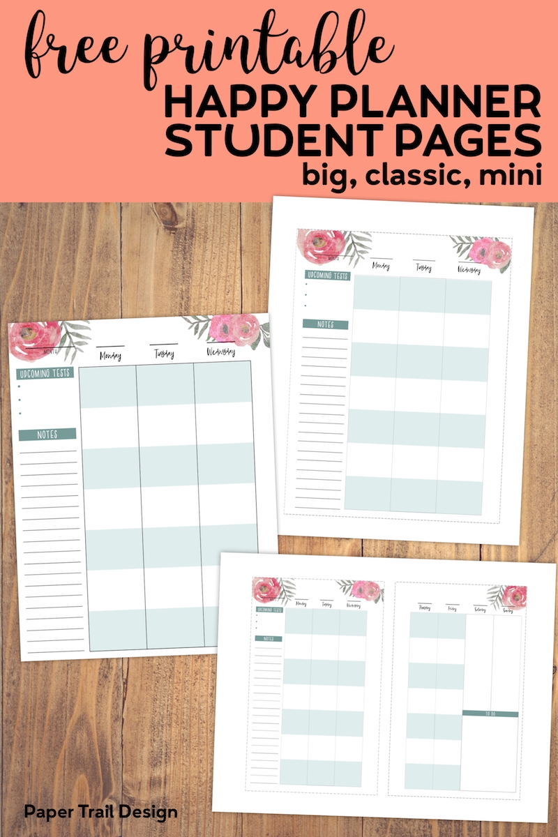 Free Printable Happy Planner Student Pages Paper Trail Design