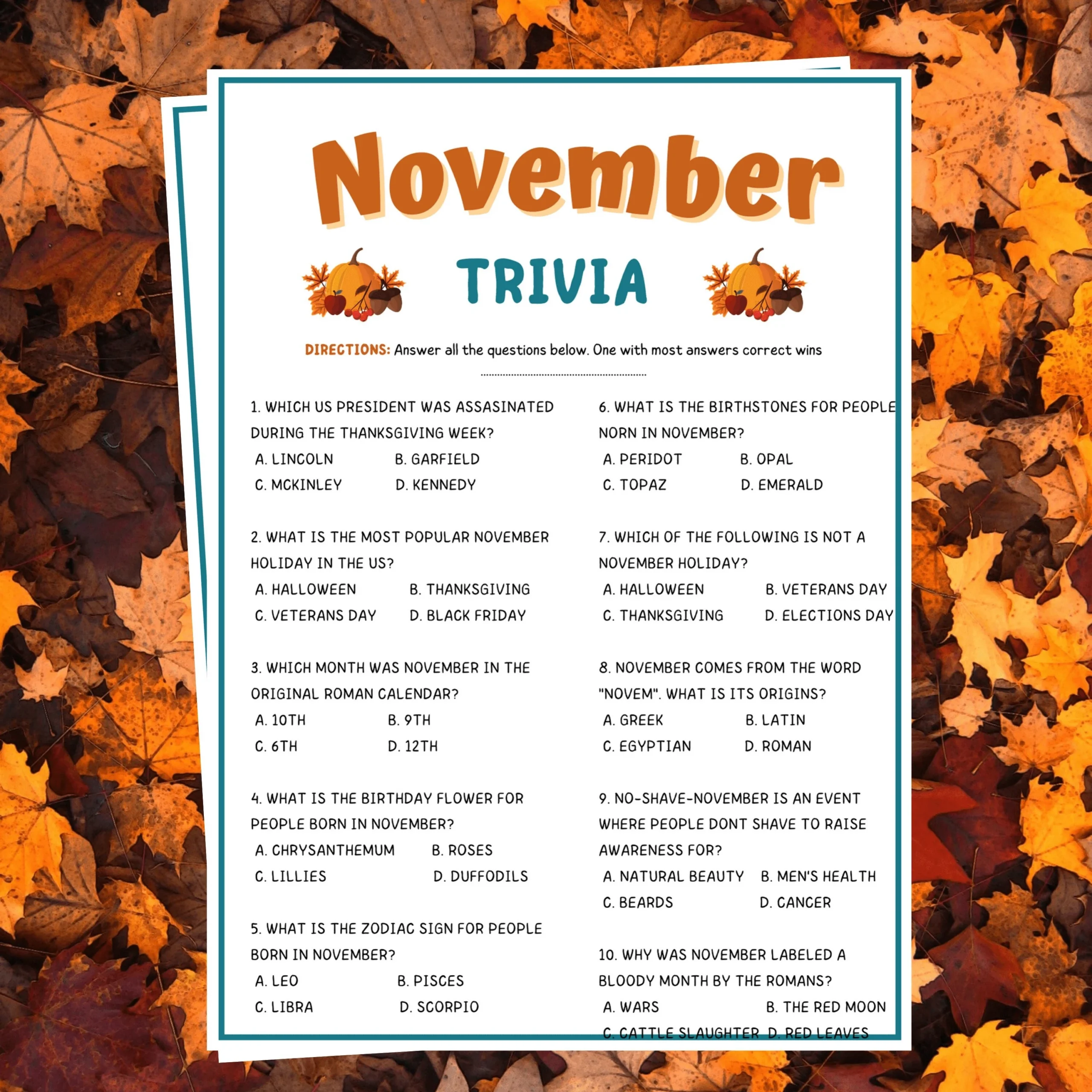 Free Printable November Trivia: Get Ready for Some Fun!