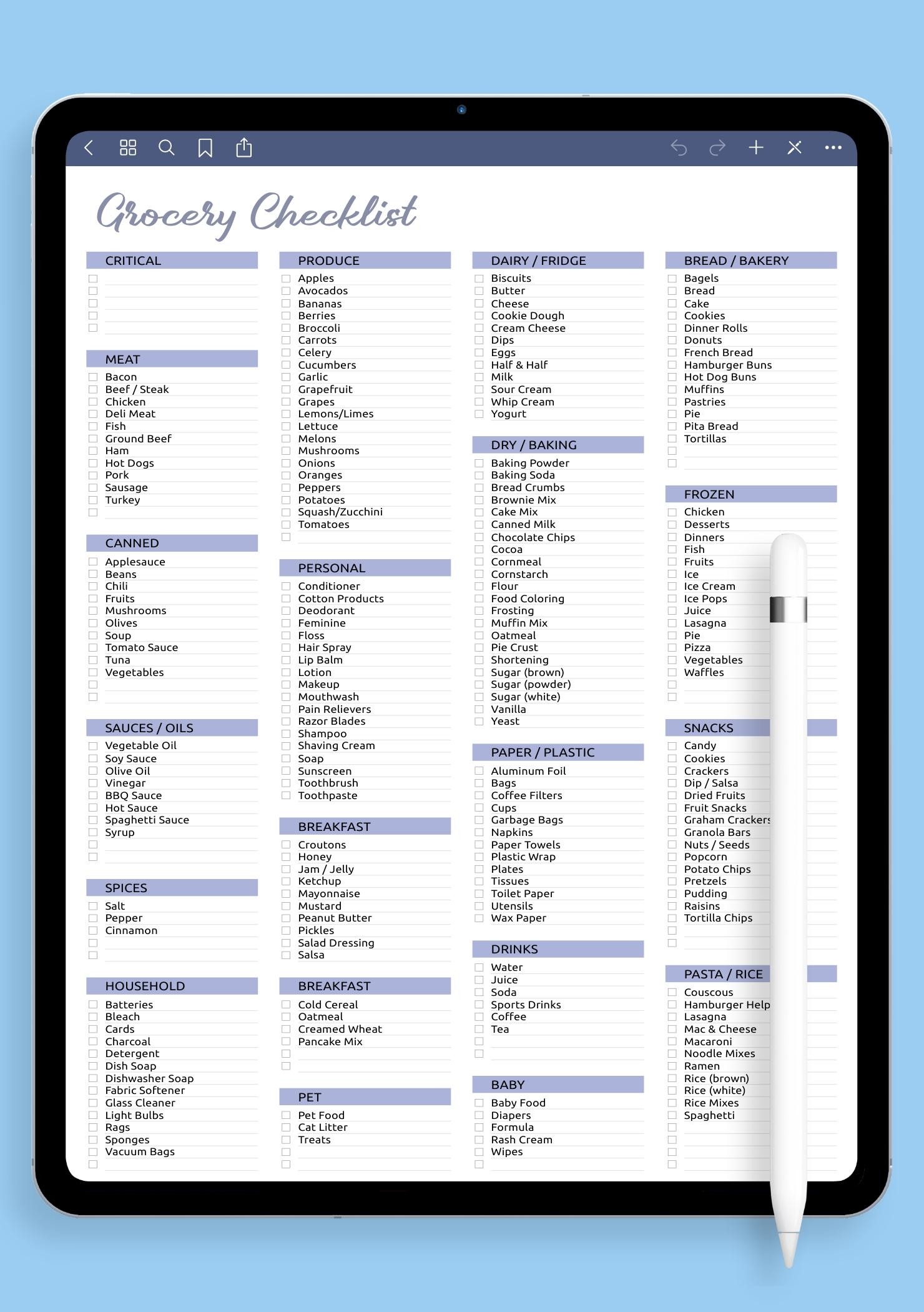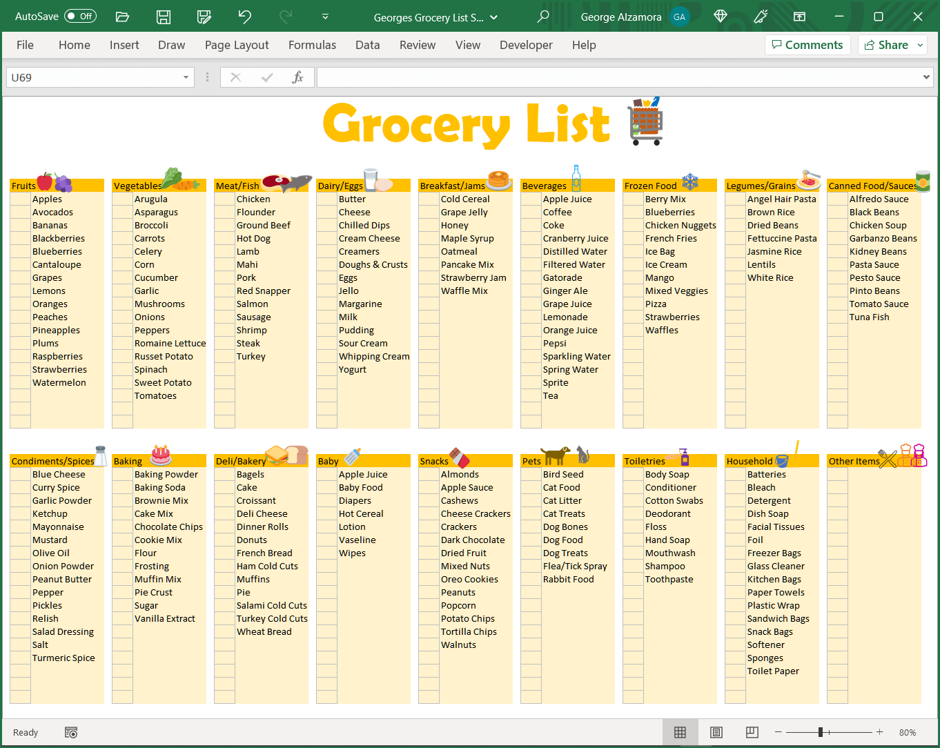 Grocery List Spreadsheet Printable Editable Food Shopping Planner BuyExcelTemplates