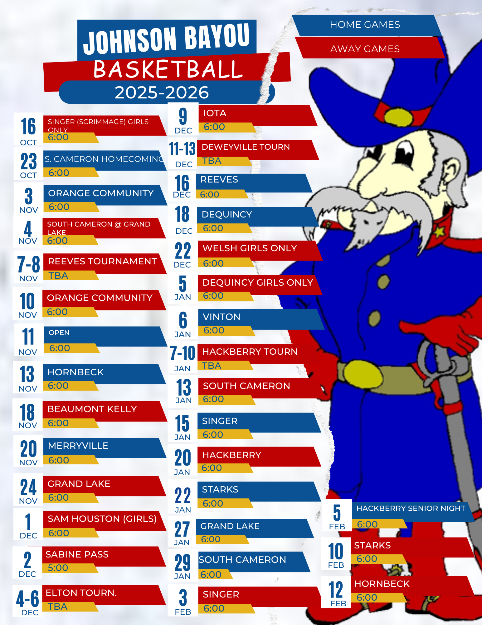 2025 2026 Basketball Schedule High School Basketball Johnson Bayou High School