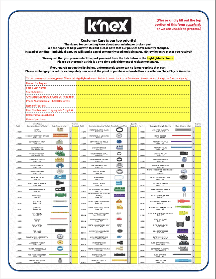 Knex Pieces List Printable