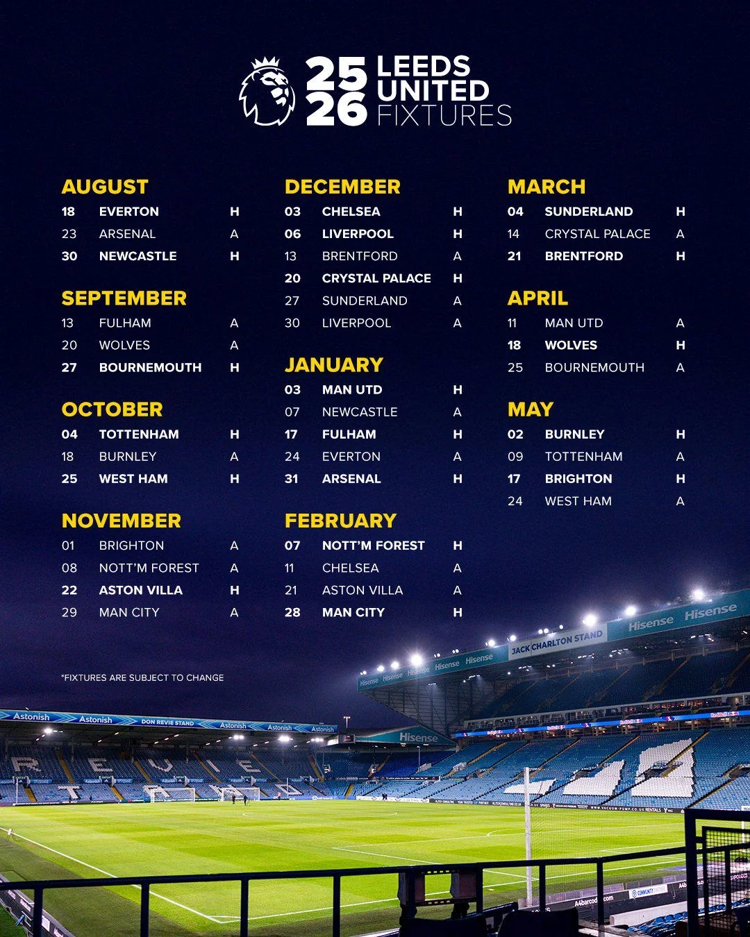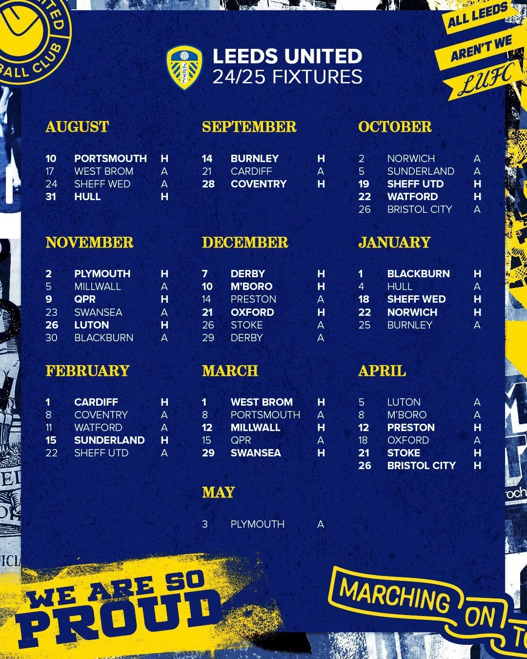 Leeds United 24 25 Championship Fixtures R LeedsUnited