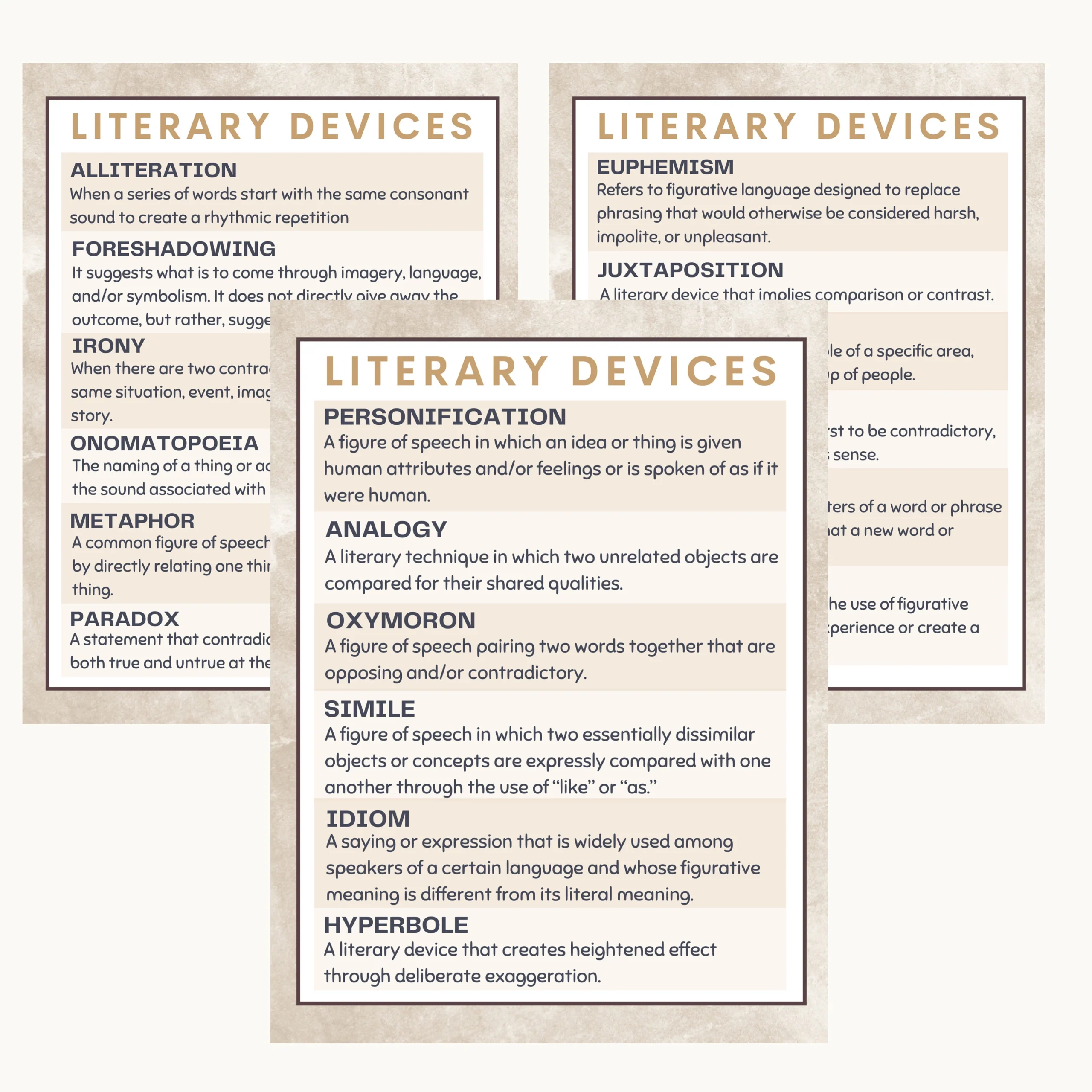 Next time you come across a metaphor or personification in a piece of literature, you’ll be able to consult your literary devices chart printable for a quick reminder of what that technique entails. It’s like having a cheat sheet for unraveling the mysteries of literary works!