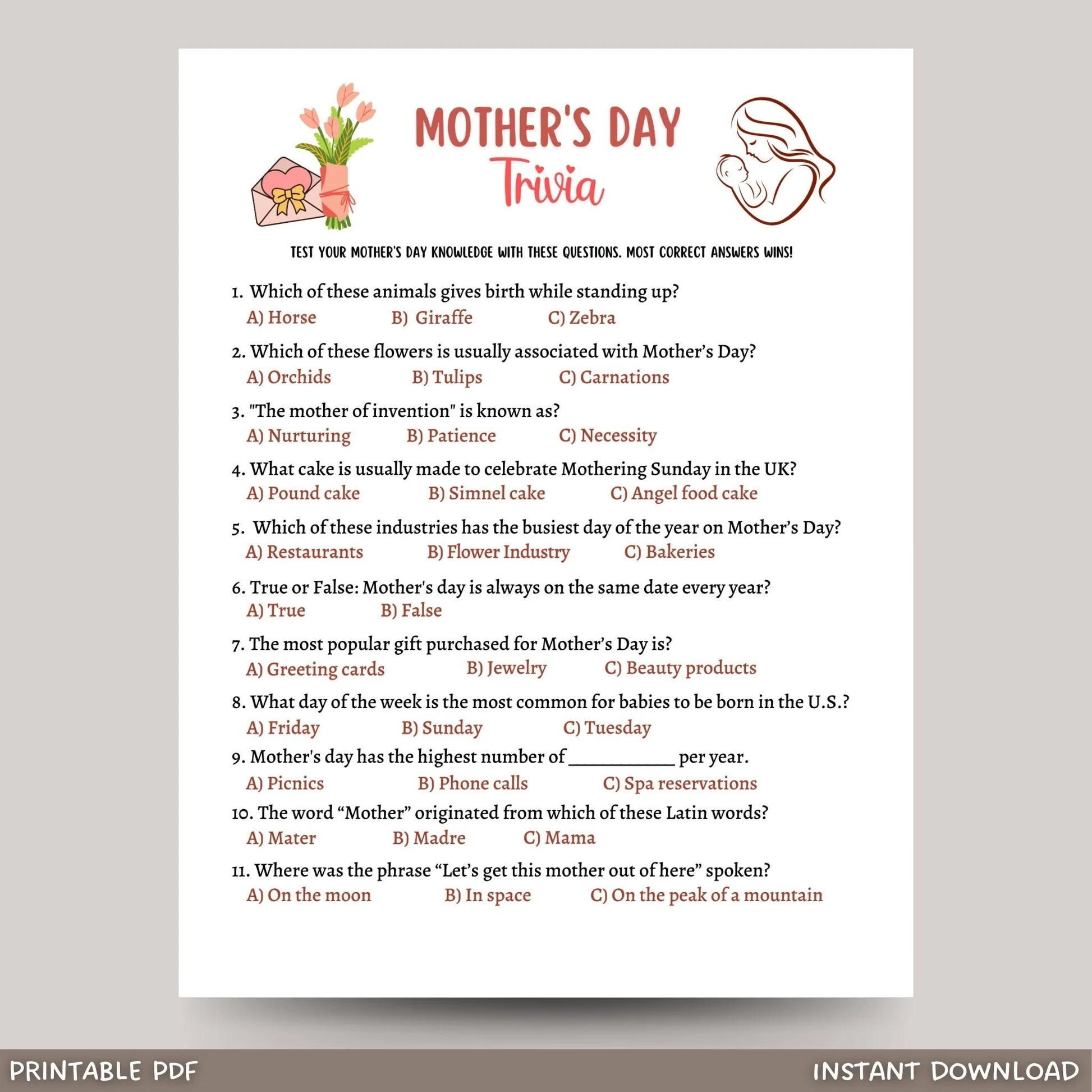 Mother’s Day Trivia Printable