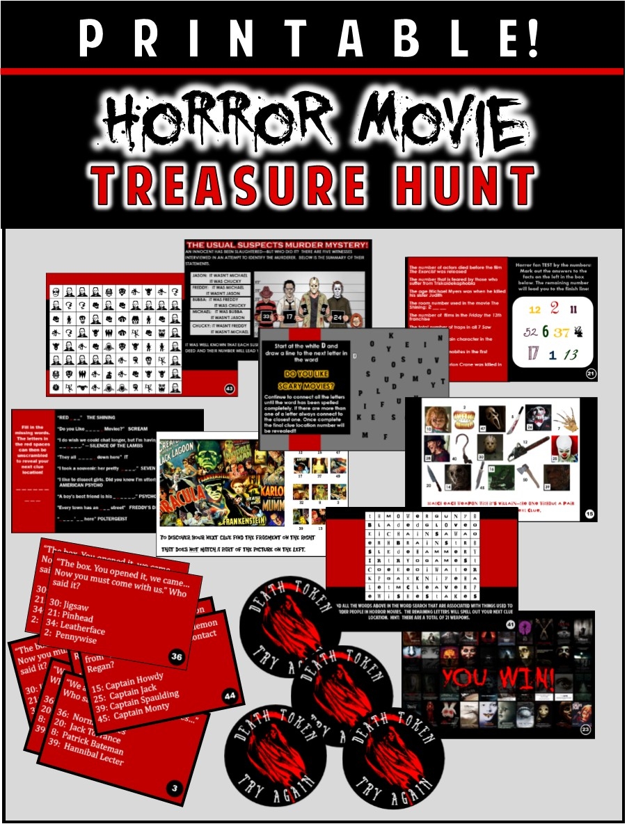 Horror Movie Party Game Printable Horror Flick Trivia Treasure Hunt
