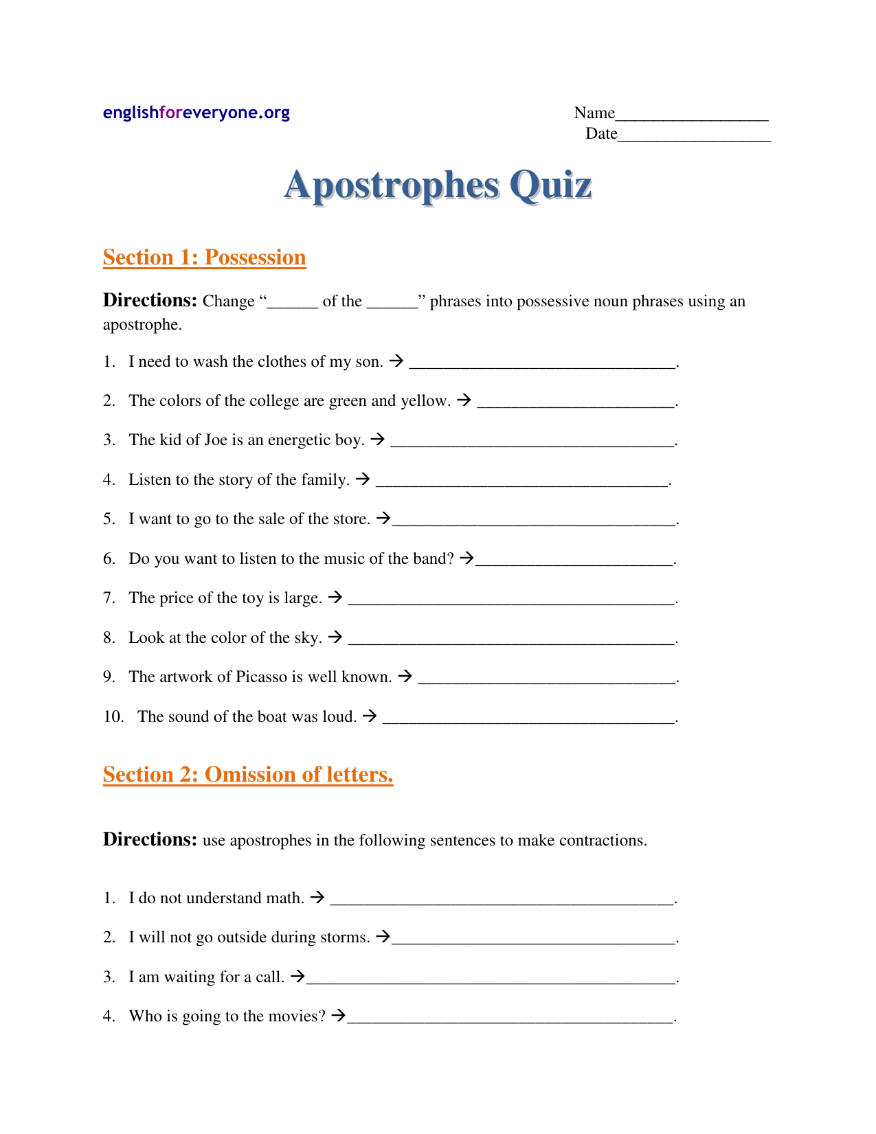Remember, practice makes perfect when it comes to mastering apostrophes. So grab your quiz, get comfortable, and enjoy the journey to becoming an apostrophe ace. Happy quizzing!