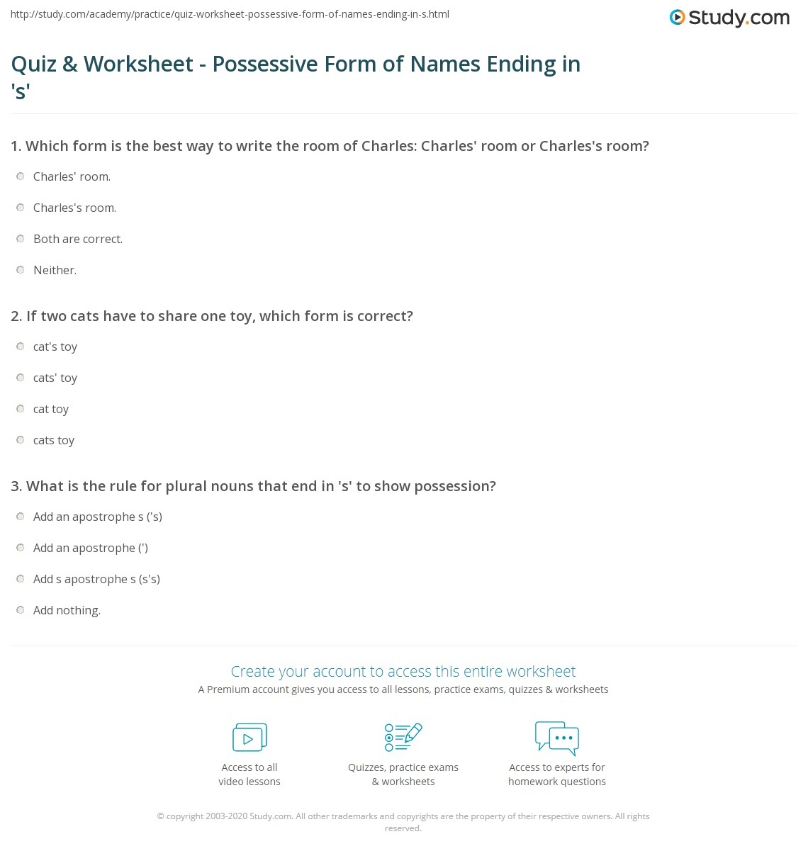 Quiz Worksheet Possessive Form Of Names Ending In s Study
