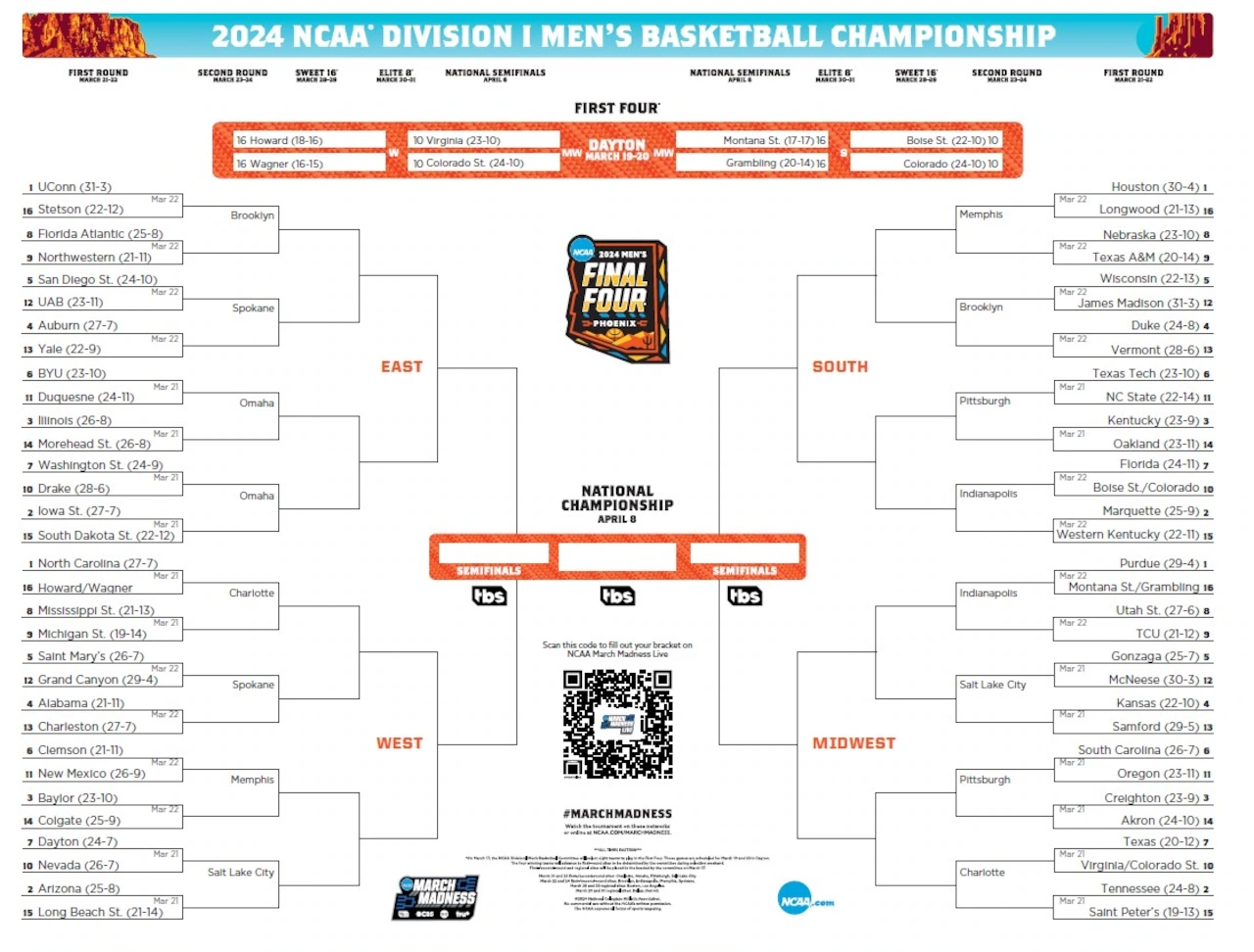 Simply download the printable schedule, print it out, and hang it up in your home or office. You’ll have a quick and easy reference guide to all the games in the NCAA First Round, so you can stay connected to the excitement of college basketball.