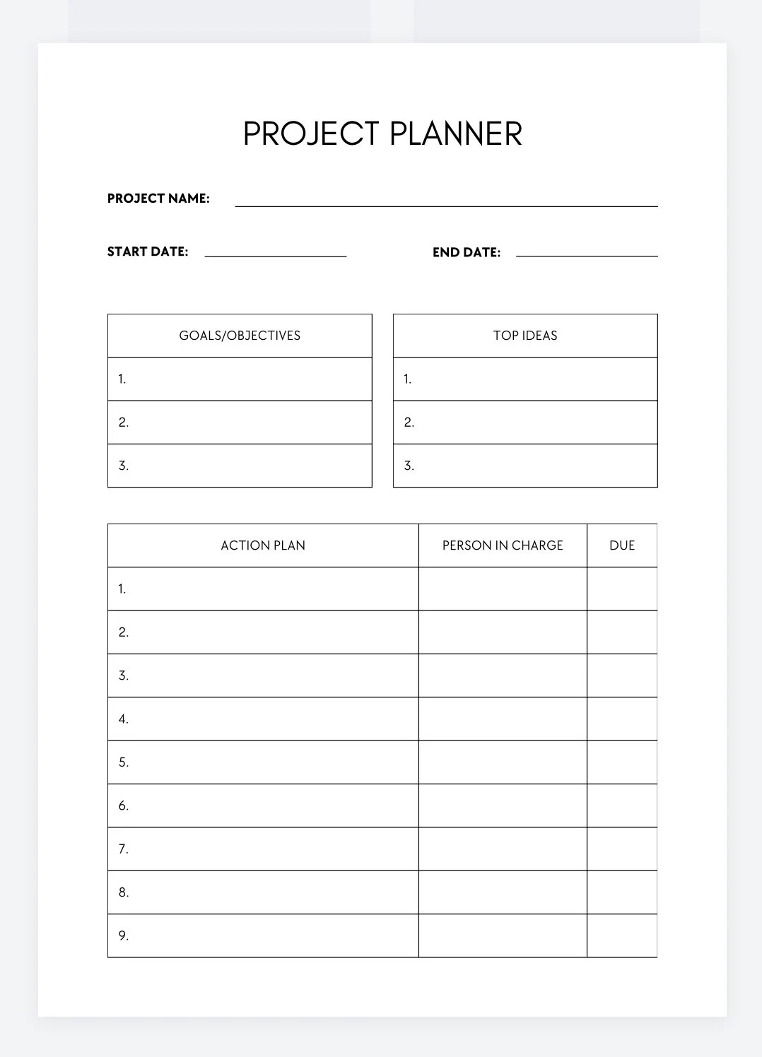 Next Action Printable Project Planner