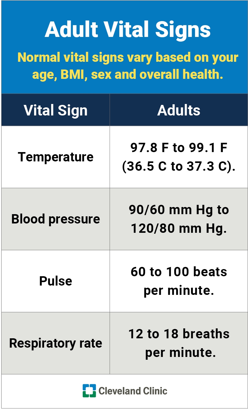 When your vital signs fall within a certain range, they are considered normal. For example, a resting heart rate of 60-100 beats per minute is typical for adults. Abnormal vital signs may indicate an underlying health issue that needs attention.