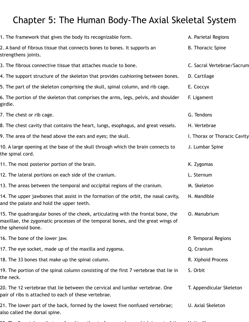 Are you looking for a fun way to learn about the human body? Why not try out a Printable Axial Skeleton Quiz? This interactive quiz is a great way to test your knowledge of the bones that make up the human skeleton.
