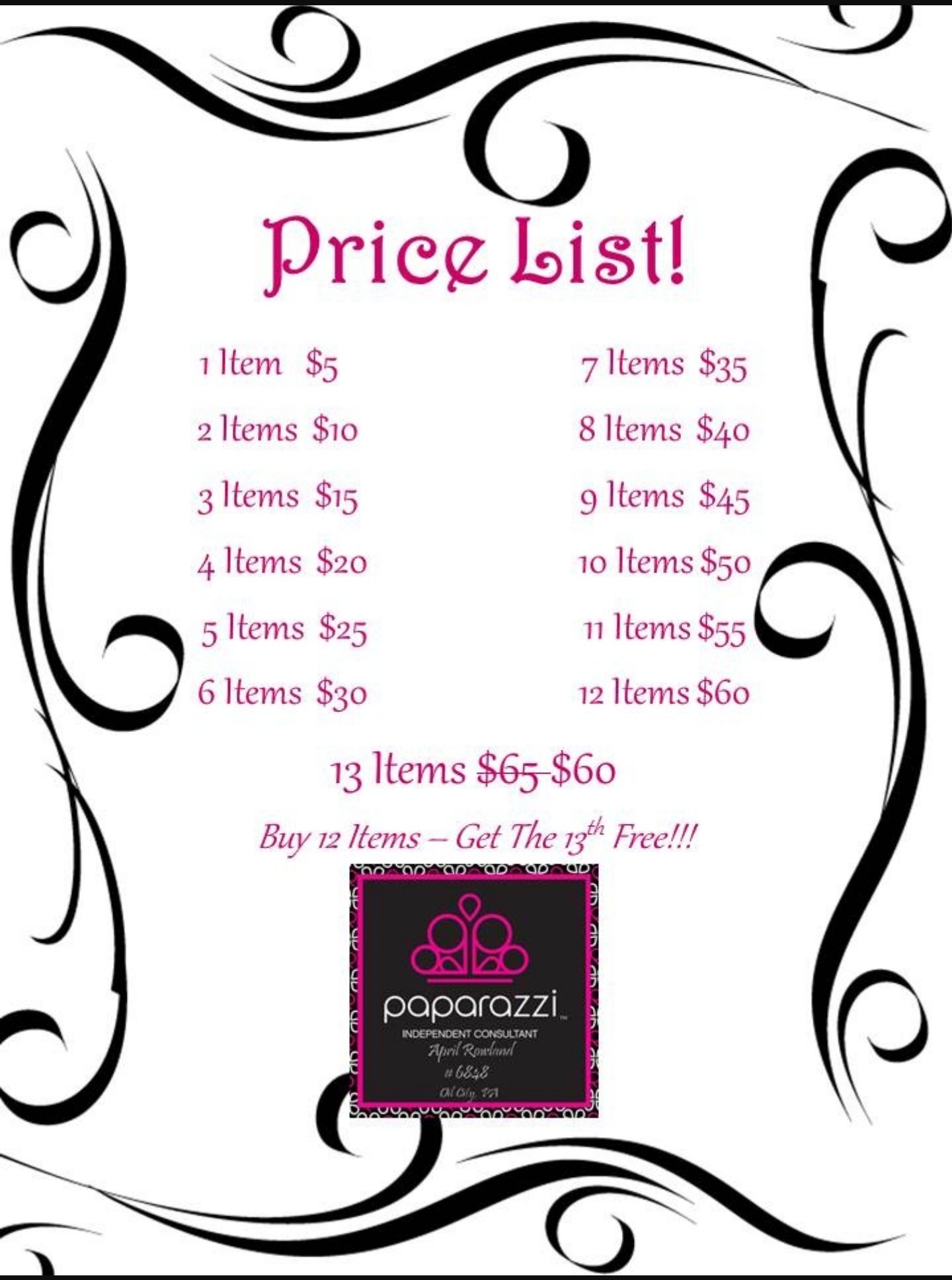 Printable Paparazzi Price List